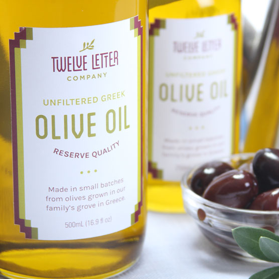 The warm embrace of the sun-drenched, ancient Greek countryside is richly evident in every taste of Twelve Letter Company Olive Oil. Enjoy its buttery, smooth sensation on the palate, its fruity aroma and slight peppery zestiness in the throat—it’s a symphony of flavorful notes few olive oils can match. Above all, our gourmet olive oil is highly balanced and harmonious in flavor to accompany your favorite dish, or simply when enjoyed alone with nothing but bakery-fresh bread. All of these attributes are evocative of the highest-quality olive oil, produced on the day of its harvest to maximize the value of its anti-oxidants and healthy benefits. Twelve Letter Company Olive Oil—Brought to America with pride, a love of great flavor, and a deep appreciation of the virtues of our ancient culture.